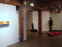 The first Midnight video produced an idea, a set of colors, a structural system for a set of videos. These videos became a substratum for other works. Some of these pieces are interactive asking the viewer to surrender, to become vulnerable by laying down to view a video, or to participate in a more subtle way, like carrying colored blocks around the gallery.