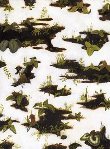 In My Ghost At Home, the inaugural exhibition at Parallax Gallery, three artists present work that courts tragicomic circumstance as a source for image making. In the works of Gil Riley (MFA 2012), Brian Rush (MFA 2012), and Josh Dihle (MFA 2012), mutational figures and forms carry out a negotiation between otherworldly environments and the physicality of their materials. Each artist targets the viewer as a subjective witness, using color and shape as intermediaries to elicit a direct emotional response to visual experience.