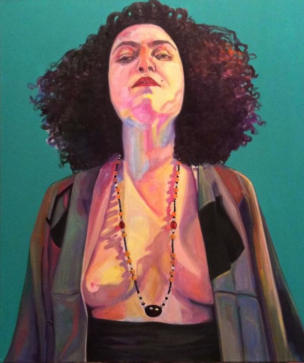 friends of my world is a selection of recent paintings from the artists’ collection. The subjects in the pictures shift from the artist’s literal self to her imagined self, to the more recent work that ventures into the realm of deciphering and depicting others. Each canvas holds within its bounds the artist’s world. In this unfolding world the hidden becomes visible and the animate and inanimate intermingle. It is this oscillation between the real and the imagined that has the power to transform and suspend time. In this space of looking; getting lost in a fold of fabric or a tuft of unruly hair- something is revealed letting us in on this sculpted moment between the artist and the sitter or between the artist her camera.