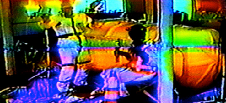 HalfLifers is an ongoing collaborative project developed in 1994 by Torsten Zenas Burns and Anthony Discenza. Working primarily in video, but also in large-scale installations, HalfLifers employs a lo-fi aesthetic, nostalgic of cathode ray televisions and VHS camcorders. The videos reveal Burns and Discenza performing as anyone but themselves, producing a sincere absurdity that reflects on the contemporary issues of anxiety and identity in the technological age.
