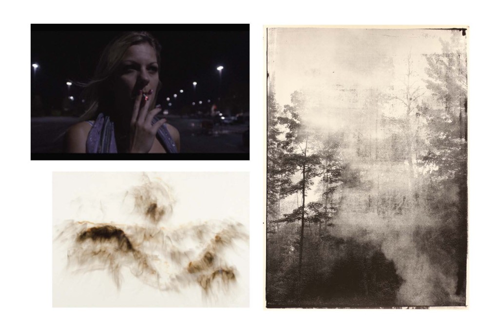 A multi-media environment housed in the hundred-year-old Comfort Station, A Stranger in Your Arms brings together artists exploring the obscure, the unnameable, and the uncanny. Through the use of shadows, fog, mist, and smoke, atmospheric screenprints by Brad Rohloff and smoke paintings by Kate McQuillen set the tone of the space, punctuated with taxidermy by Woolly Mammoth. Visitors are drawn through the main gallery toward a sound/video installation entitled And Then It All Came Down, a new video piece by Wrekmeister Harmonies. To view And Then It All Came Down, visitors are invited to remove their shoes and lie and lounge on the floor of the felt-lined project room, focusing their gaze on the video projected on the ceiling of the space.