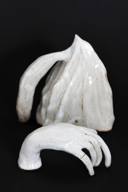 The present exhibition is organized in a series of pairs, demonstrating Carré’s interest in the connections and experiences that people have with a set of artworks. Sculptures — showing two separate states of being — are arranged on pedestals in pairs, engaging in a type of conversation with each other and accompanying drawings, also exhibited in pairs. Carré describes the drawings as responses to the ceramic sculptures and animations on display.