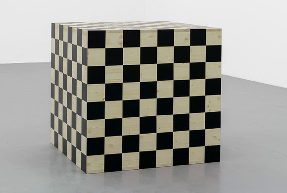 The artists in The Fifth Dimension contribute to these questions in distinct ways: With his keen knowledge of paint’s spatial effects, Pieter Vermeersch exploits the transformative qualities of color applied directly to the architectural frame. Tauba Auerbach fuses one ancient material (marble) with another (a book). Geof Oppenheimer’s contained explosions may be seen to enact a different fusion – of physics and politics, nano-time and the long course of history. Iman Issa harnesses the mind’s associative power, multiplying means of translating (indexical, linguistic, material), to arrive at a point where an image of her own past might transform into the present of another person. Ika Knežević mobilizes the forces of production – for instance, of the ergonomic shoe and of the elegant self who wears it – introducing an aesthetic regime where work and leisure are (again) clearly demarcated. Karl Holmqvist’s use of his voice for his and other people’s words and Lili Reynaud Dewar’s use of her body for her and other people’s gestures make it difficult to maintain clear separations (between artists and artworks, one epoch and another, this culture and the other). The Fifth Dimension foregrounds such productive con-fusions, relying on the clarity of artistic gestures to build complexity. None of this is a game, unless perhaps we wish to play chess.