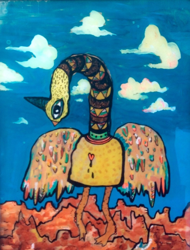 ‘Jesy Grose was born August 16th 1984. She grew up in a rural country town near the boarder of Illinois and Wisconsin. While discovering her love for nature…she got into drawing animals and bugs, along with found pets. When she turned 15, she seized a window from the dumpster and saw a vision for a life of art on glass. Using her creatures to expose ideals of her child hood and life experience, she sets a standard to be crossed. Play hard, dance, live, ride hard, be gentle, be crass, dress up silly… Be yourself! Jesy Grose’s work expands on her personal human potential as she creates band-aids, roads and itsy-bitsy spiders to encompass her creatures delighting in the pain…whom are sometimes sad and longing. Jesy Grose believes the mind is master of reality.’