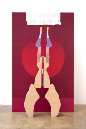 In an installation of new hybrid objects, Frydenborg combines cast, painted aluminum sculptures with a series of silkscreened freestanding panels, loosely approximating the visual syntax of science fiction paperbacks.