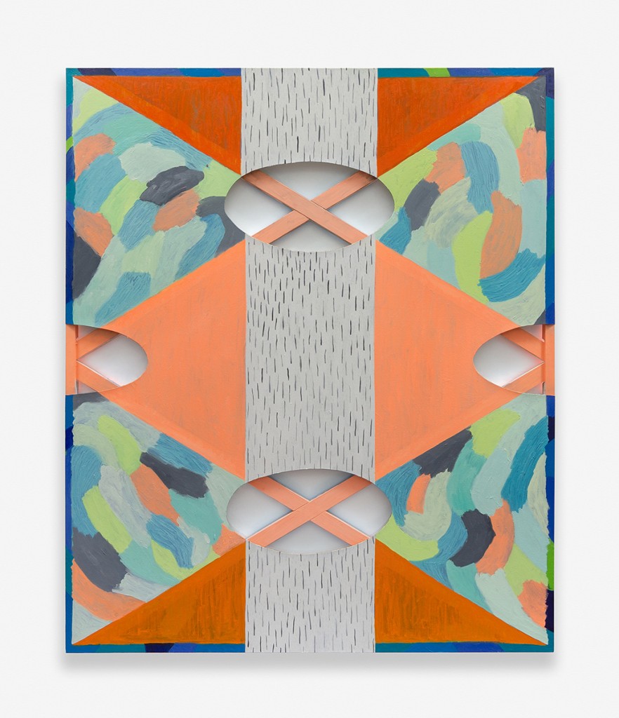 For this solo show, Nelson has transformed the Cleve Carney Art Gallery into a shifting landscape of pulsating and vibrant paintings that embraces a plurality of holes, simultaneity of sides and folds, and chromatic movement. Selections for this exhibition are from a body of Nelson’s work from 2015 and will consist of more than 10 large-scale, double-sided paintings including “Folding into Triangle,” “Touching” and “Psychedelic Psychic,” among others.