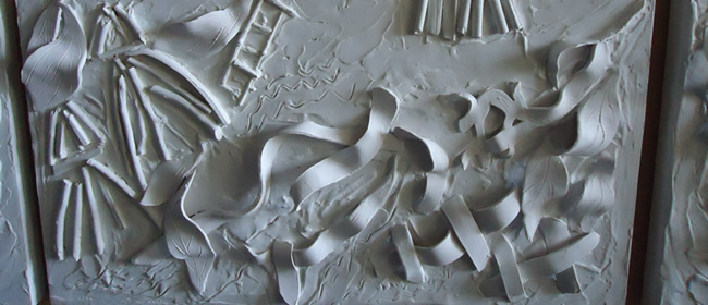 From a career spanning five decades of agilely investigating forms with tactile media, the mostly recent works by Dorothy Hughes are all inspired by the natural environment. Movement is constantly in play, not only in the dynamic interaction of light and shadow but also with the recurring symbols of ladders and fences that further imagine the concept of depth.