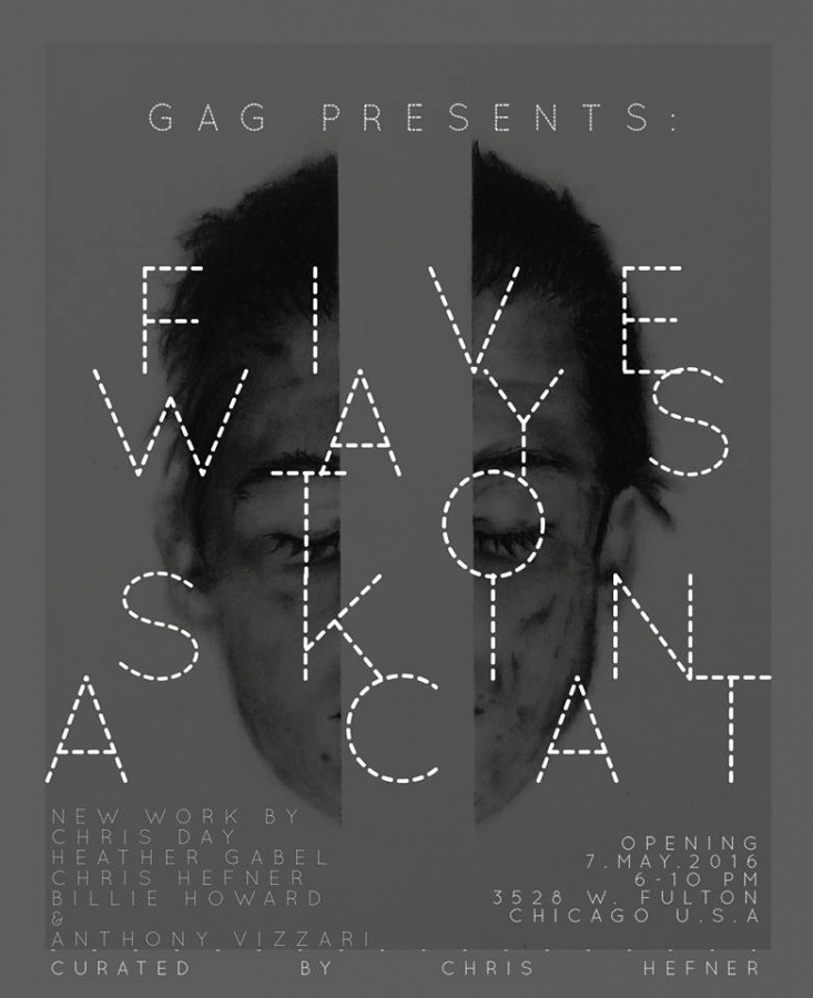 GAG Space (AKA Garden Apartment Gallery, a DIY space in Chicago’s Garfield Park neighborhood) invited Chris Hefner to curate and exhibit in their spring show and he’s pulled together a few of his very favorite Chicago artists for FIVE WAYS TO SKIN A CAT. The show will feature new work by Chris Day, Heather Gabel, Billie Howard, Anthony Vizzari and Chris Hefner. This show addresses the notion of collage. Whether directly or otherwise, everyone exhibiting is engaged in the appropriation and modification of existing source material to create new images, sounds and experiences.