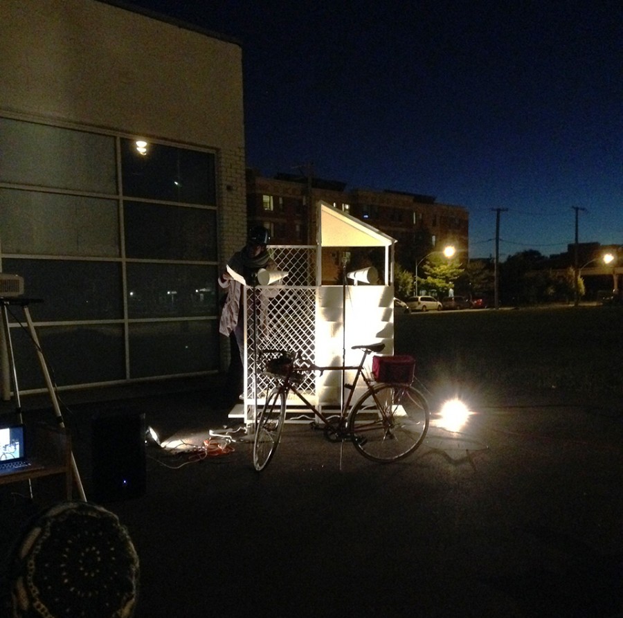 The Mobile Speakers’ Podium for Citizens and Non-Citizens, created by artist Jenny Polak, is imagined as a deployable speakers’ corner that is both functional and symbolic. The two halves of the Speakers’ Podium rely on each other. Suburban house collides with prison fence to invoke the needed voices and ever-presence of the incarcerated among the free in a country that locks up 2 million people.