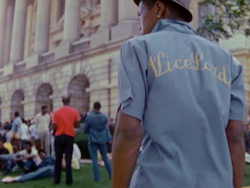 DeWitt Beall’s ‘Lord Thing’ (1971) traces the evolution of the Conservative Vice Lords (CVL), a Black “gang” (or “club,” depending on one’s preferred terminology) that rose to power on Chicago’s West Side during the 1960s. Through re-enactments and documentary footage, we see how CVL members school successive generations first through hazing and turf wars, then business and community development projects aimed to foster Black unification and self-determination. CVL’s efforts to revitalize the West Side with amenities and arts activities (including mural projects led by artist Don McIlvaine) are challenged by Mayor Richard J. Daley’s “war on gangs,” not to mention continuing inequalities in employment, recreation, health care, and housing for black Chicagoans. Lord Thing raises questions about the limits of Black capitalist space making, and asks what knowledge and power, if any, can be transmitted across generations subjected to ongoing spatialized oppression.