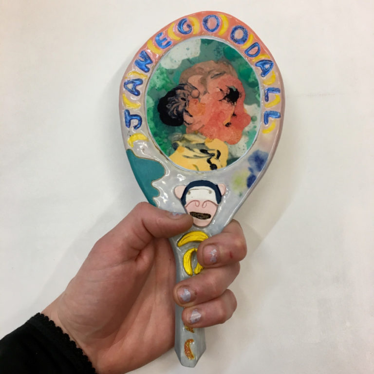 Included image: “Jane Goodall Hand Mirror” reflecting detail of “Sir Thomas and Helen Keller at a Picnic”
