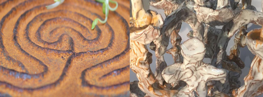 For the exhibit, Schwalbe will be producing interactive labyrinths in an inventive range of materials both inside the exhibit space and outside in the garden and parking lot of the Albany-Carroll building in East Garfield Park. Mason has reworked an earlier set of glazed ceramic sculptures that he once considered finished. Mistakes were made, Mistakes were embraced.