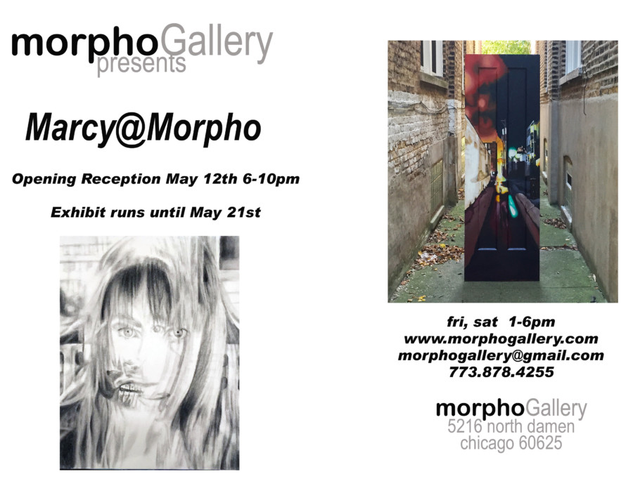 Morpho Gallery will be exhibiting Marcy Kennedy Anderson in a Solo show featuring her latest artwork. Marcy, a resident of the Edgewater community has been a prolific figure in the Emerging Art scene in the area for years. She currently runs a successful traveling exhibit “Random Acts of Gallery”. Created by artists, Random Acts of Gallery gives Chicago artists more opportunities to have their work seen by utilizing blank walls in unexpected places. Marcy also teaches art classes at Bottle & Bottega Evanston location. Marcy also actively curates at Morpho Gallery.