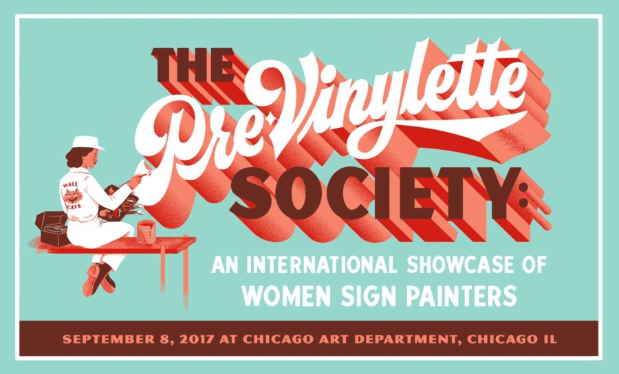 The Pre-Vinylette Society: An International Showcase of Women Sign Painters Curatorial Statement Chicago Art Department and the Pre-Vinylite Society are proud to present a group art show celebrating the work of more than 60 women sign painters from 9 countries around the world! This show, the first sign painting exhibition to feature women only, will display the talent of an international array of female sign painters with a wide range of experience and skill. With the current political climate in the United States and beyond, this exhibition offers a vital feminist statement that pushes back against the common belief that the field of sign painting, like many skilled trades, is the domain of men alone.