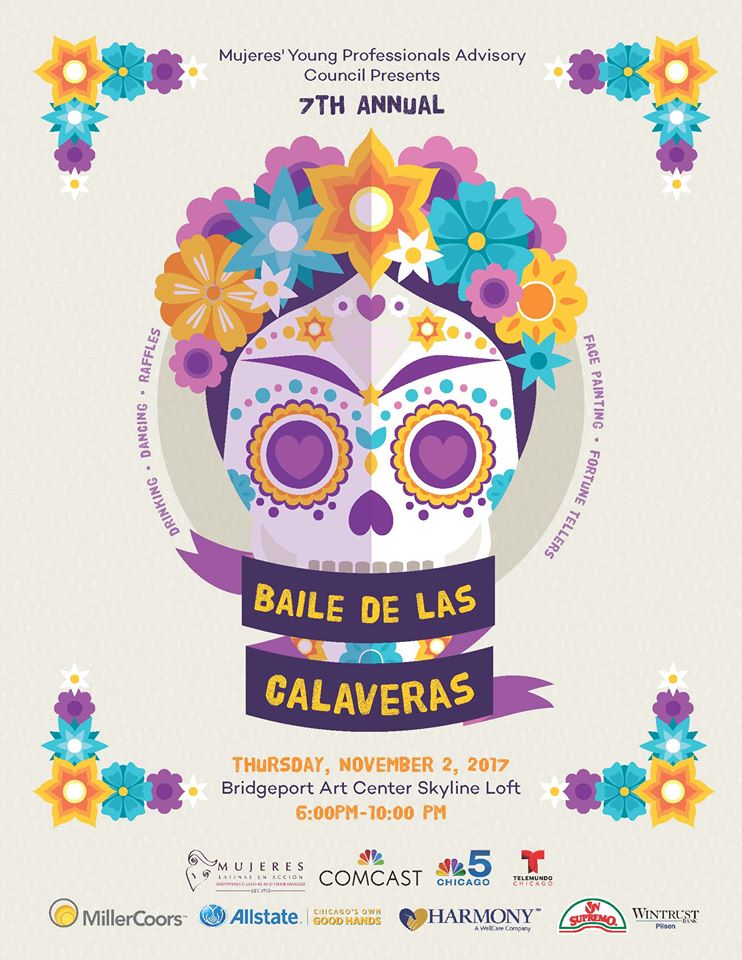 On Thursday, November 2, 2017, the Young Professional Advisory Council (YPAC) at Mujeres Latinas en Acción will host the Seventh Annual Baile de las Calaveras event at the Bridgeport Art Center’s stunning Skyline. This exciting event commemorates the Day of the Dead and helps to underwrite the crucial work of Mujeres Latinas en Acción. As is our tradition, Baile de las Calaveras will include a breadth of activities to honor and share Latino culture. The event will feature MillerCoors beverages, food stations, a DJ, calavera face painting, fortune tellers, raffle prizes, and, of course, a lot of dancing!