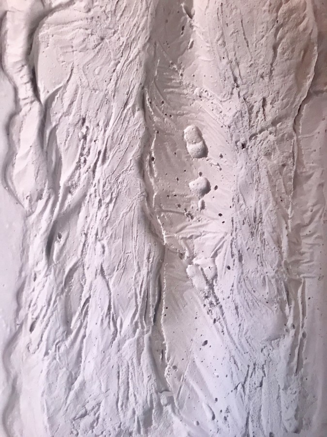 This exhibition presents two works which extract nuanced movements of an average person, illuminating their relationship to the formal elements of visual art. “6HRS,” features six concrete slabs all approximately two feet by three feet and three inches deep created by sitting and repositioning the body on top of cement as it hardens over the course of an hour. Looking into the subtely of every-day body movements and the act of repositioning the body, each one of these concrete slabs is a document of this movement, hosting the relief of impulsive weight shifts. “to shrug like silk” a solo work choreographed and performed by Peterson is projected onto three screens. This work was constructed through improvisational techniques investigating the same formal elements of visual art (form, line, shape, space, texture, tone, and color) within the body. These two pieces showcase the culmination of three years of research in correspondence with the completion of a Bachelor of Arts in Interdisciplinary Arts and were created during a semester long independent study as a part of her thesis for Columbia College Chicago’s Dance Department.
