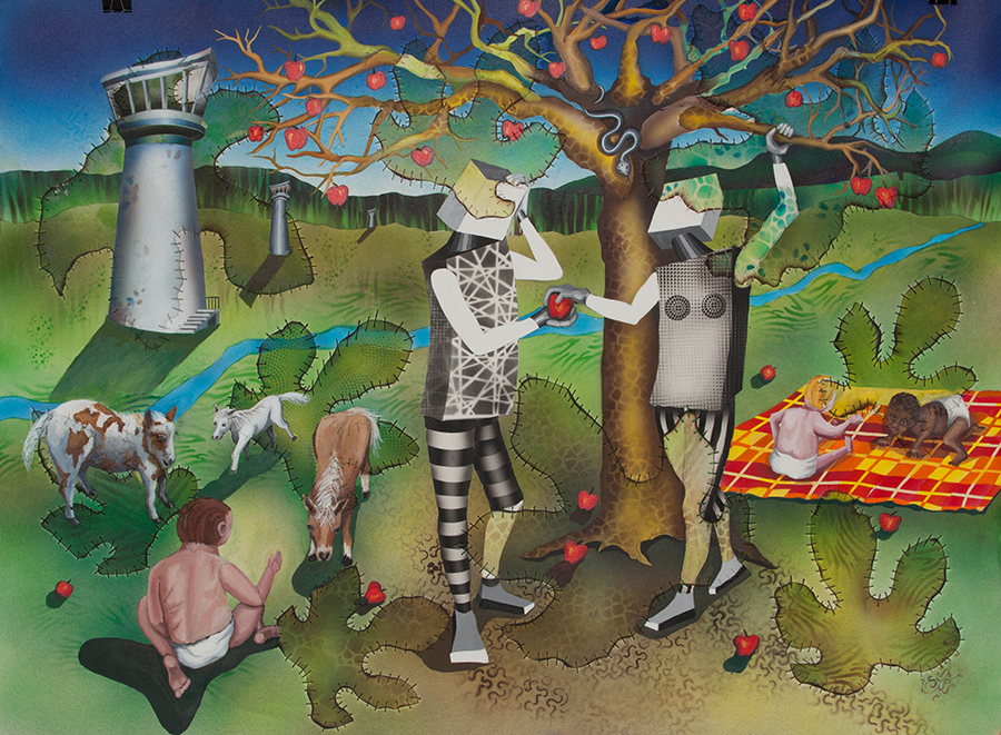 Contemporary art does not leave us alone. It exists, in part, to confront us with those questions we are best at avoiding: Do we have a right to be here? Are we subdued by our own invention? How does anything remain precious? Kathy Weaver, Robert Robbins, and Thomas Lucas create extraordinary work that focuses our attention directly at those things which wrinkle the mind. Weaver’s collaged images dare to recall the beauty of our planet alongside the apocalypse we foment, while Robbins’ paintings and Lucas’ prints insist our sentimental past is threatened by an untethered present. This thoughtful, focused exhibition forces us to acknowledge that without accountability, you know what comes next.