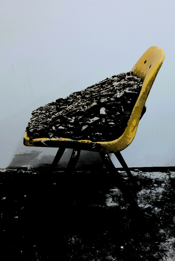 Our daily newsfeeds stream images from the Middle East that overshadow their captions’ specific locales and events. To the American viewer, these images are nothing less (and nothing more) than images of destruction and devastation; the human dimension of these images is overt but largely unfelt in America. Thus, Alison Ruttan’s exhibition, An Unmaking, calls upon the earthy materiality of clay and the familiarity of household furniture to domesticate the carnage. A chair becomes a pedestal that supports rubble, and building remnants rupture the planes of coffee tables, dressers, and other household furnishings. These works carry an intimate scale imbued with intricate details that command Ruttan’s viewer to come close, and in doing so, An Unmaking unfolds an allegory of American distance from the reckless dismantling of Syrian and Iraqi homes and communities.
