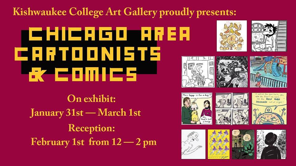 Tags: Aaron Renier, Alex Nall, Amy Lockhart, Andy Glass, Andy Hongisto, Anya Davidson, Ben Nadler, Chicago Area Cartoonists & Comics, Chloë Perkis, Chris Eliopolis, Chris Ware, Conor Stechschulte, Emily Greer, Illinois, Ivan Brunetti, Jeffrey Brown, Jessica Campbell, Keiler Jean Roberts, Kevin Budnik, Kishwaukee College Art Gallery, Lane Milburn, Malta, Mike Freiheit, Tim Seeley, Yewon Kwon