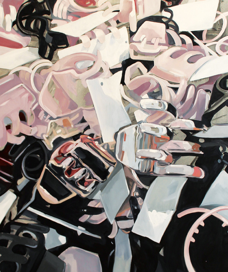 A new body of work influenced by the malleability of post-girlhood identity, Exaggerations in Interim challenges the female fixation on domestic skill, object materialism, and appearance. The collection of paintings subtly expresses the tension between growth and inevitability, while contorting the dependence upon objects as a reflection of identity in the internet era. These pieces depict ordinary objects at uncharacteristic times in their life cycles, which questions their purpose, their significance, and their necessity to our identities. The objects represent false narratives for supposedly meaningful, yet undeveloped occasions; they are souvenirs of moments still in formation; caricatures of sentimentality for plans that have passed without fruition.