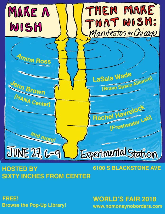 Tags: Amina Ross, Chicago, Experimental Station, Illinois, Jenn Brown, Jenny Patino, LaSaia Wade, Make a Wish Then Make That Wish: Manifestos for Chicago, Rachel Havrelock, Sixty Inches From Center, Woodlawn, World's Fair 2018