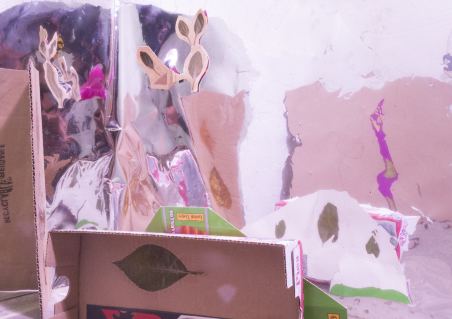 “Throughout the month of July, I’ve had some time to kill, which is also to say that I’m waiting to leave, waiting to be elsewhere, and killing time with Thomas Kong. Suspended in time, I sort through Kong’s work, finding moments where he’s done the same: layers of one-inch pieces of tape keep leaves from changing color, holding their shape, and preventing future damage. Removed from natural processes of decomposition, and placed out of time, Kong saves fragments of his world for the tests of time, from being elsewhere, and staying here. Here, in this uncertain time, Kong saves moments for us that would otherwise be forgotten, moments that need to be here later.