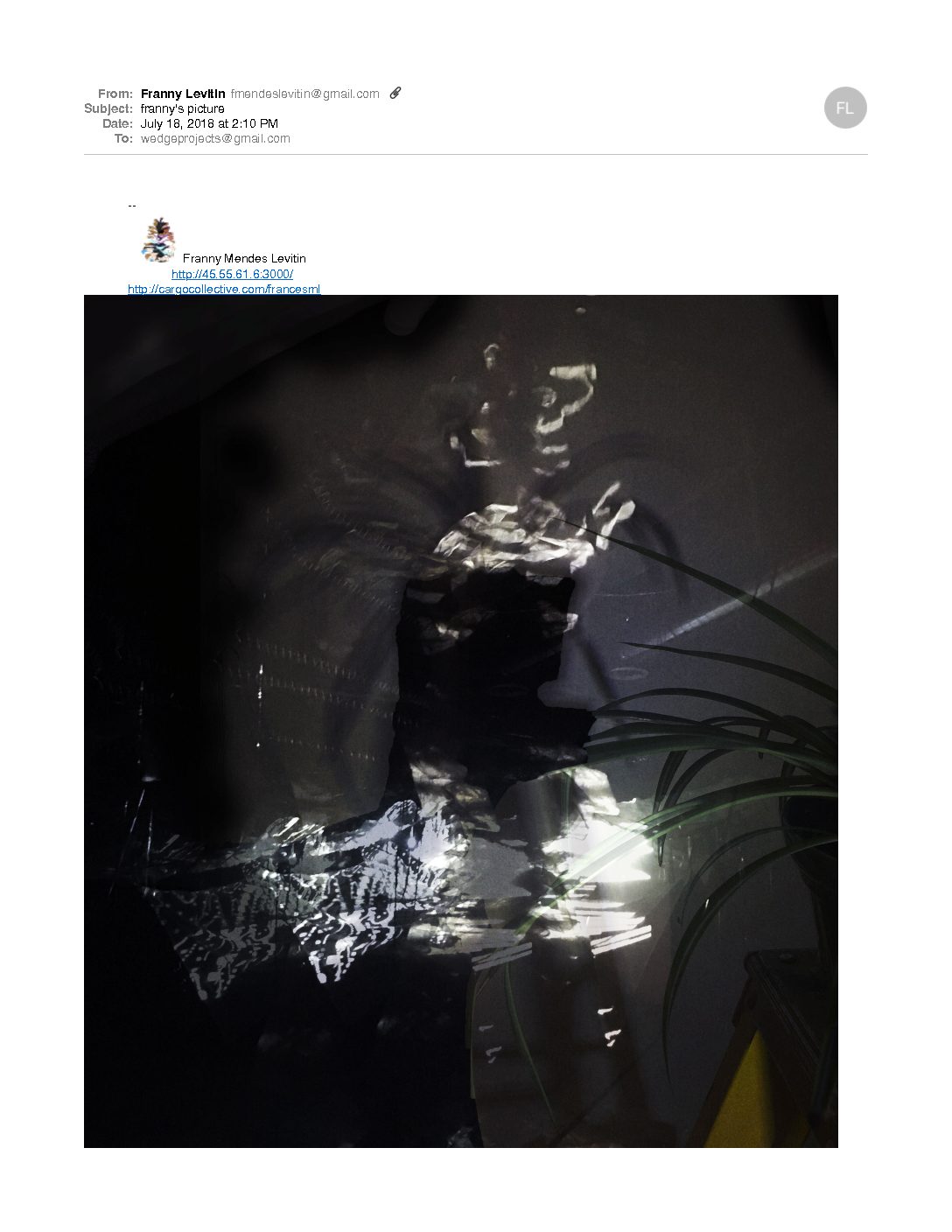 Artists in residence, Fran Levitin and Ian MacClachlan, invite the public to enjoy an evening of atmospheric, audio-visual stimulus. The evening’ presentations will be the closing event for the artists at Wedge Projects -Extension.