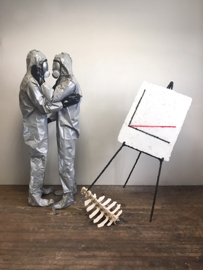 The irony of personal debt is buying-in to render debt imperceptible. Image supplants the reality of a perilous situation. The ironies don’t stop there. Maybe a precarious life of rich experiences is more interesting than what a job title and salary are supposed to deliver. Technology allows us to be better connected remotely than we are by proximity. This is fast improving (or worsening), but at what costs that are not numerical? In what ways are we indebted to each other? With whom and where do we live when our time is no longer livable? When is overdue truly too late? How tender is an embrace through a spacesuit?”