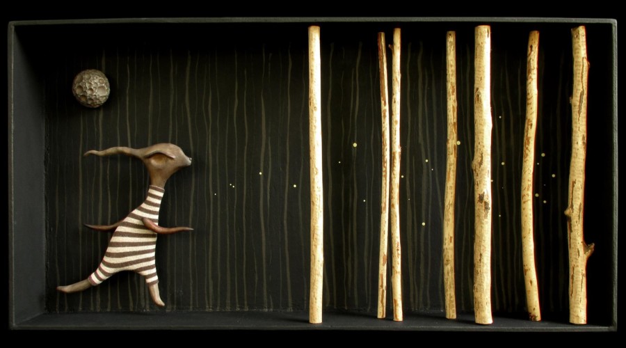 Art exhibition and reception to meet ceramic artist Kim Caisse. Kim’s new exhibition is called Making Friends. In a very literal sense Kim does make friends: these are clay creatures of her own making, utilizing materials and inspiration found in her local surroundings in Hannibal, Missouri. Kim’s friends inhabit shadowboxes, each with their own miniature world, shaped and influenced by many walks in nearby abandoned industrial spaces slowly decaying back into wilderness. The reception is August 4th, 5-8pm and the exhibition is on view until August 19th.