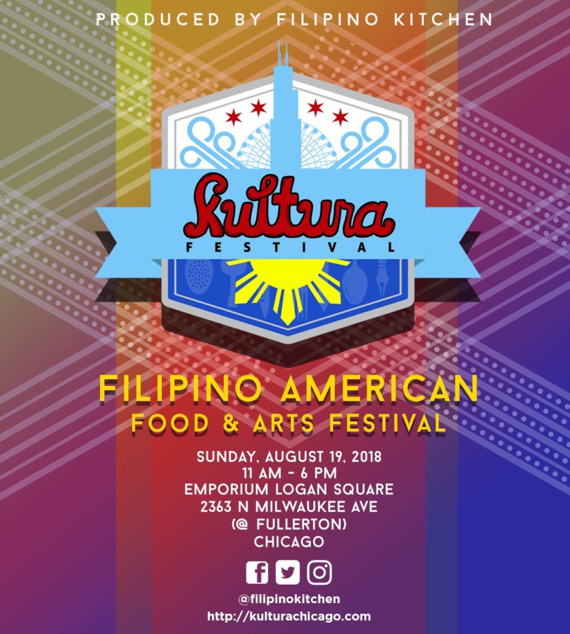 Kultura Festival, the Midwest’s premier Filipino American food & arts event, will be held this year on Sunday, August 19, 2018. Kultura Festival is in its fourth year, and is produced by Filipino Kitchen. Emporium Logan Square, 2363 N. Milwaukee Avenue, Chicago, will again host Kultura Festival. Carefully curated to appeal to those who personally identify with Filipino culture and the merely curious or uninitiated, Kultura Festival aims to highlight the best in Filipino-American food and arts in Chicago and the Midwest.