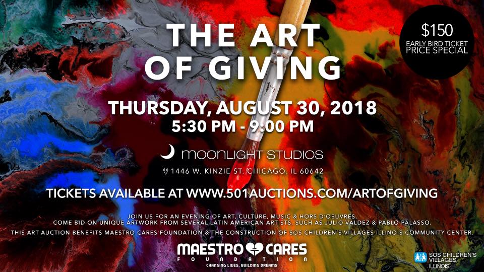 Calling all Art Lovers!! We are excited to host our first summer art event featuring several Latin American Artists. Join us for a night of amazing art, cocktails and hors d’oeuvres all in benefit of Maestro Cares Foundation.
