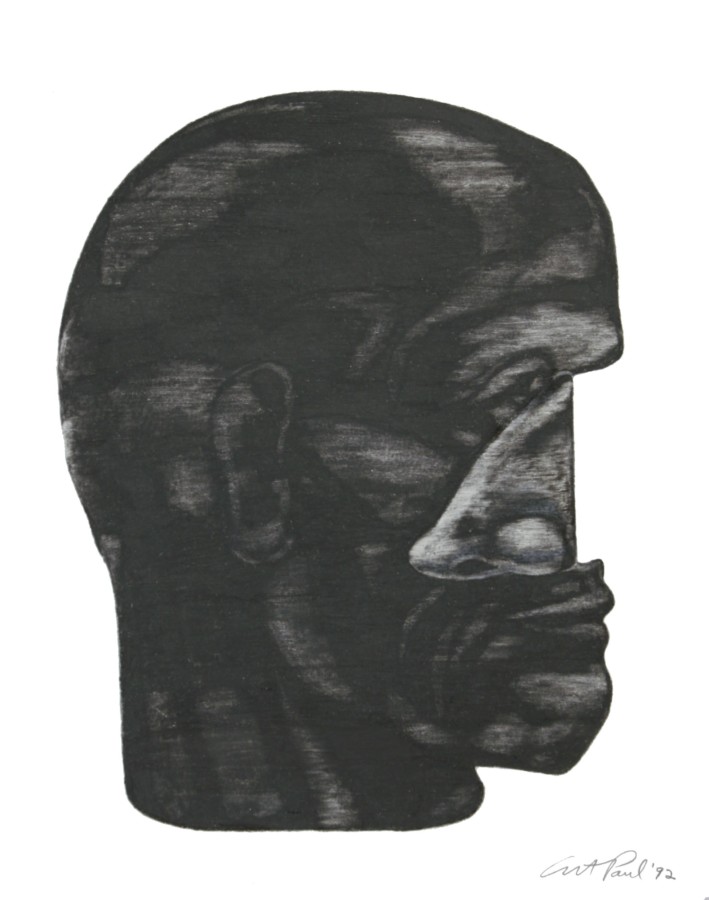 As a Jewish man, Art Paul learned from a very young age how it felt to be judged by one’s face. He saw how easily people became prejudiced in response to his physical appearance, and this inspired him to think about how people see and judge each other, and how this affects one’s identity. In his art practice, Paul was obsessed with drawing imaginary faces that represent the masks we project upon others and ourselves. We hide behind these masks, creating layers of faces and internalizations instead of showing or seeing the true person behind the face. This idea fascinated Paul to the point where he created hundreds of his “Heads” drawings, the majority of which are about race and prejudice.