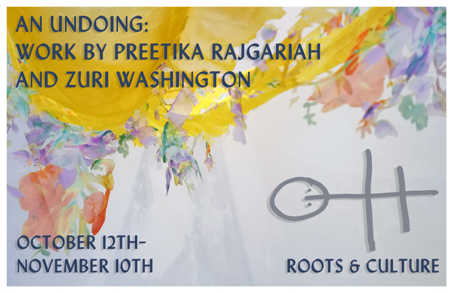 Roots & Culture is ecstatic to announce our October Double Exposure exhibition, with new work by Preetika Rajgariah & Zuri Washington. The two artists were paired by Roots & Culture’s Programming Committee.