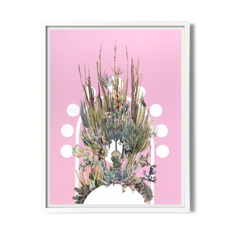 Stephen Eichhorn’s intricate flora collages pay homage to the Ages of the Anthropocene and Psychedelia, creating a transportive experience through the act of looking. Succulents, Cacti and other plant matter are arranged and intuitively piled, creating hybrid plants in micro-ecosystems that take on strangely familiar, yet cosmic forms. Using design elements and materials sourced from historical botany textbooks and other publications, these works on paper and panel heighten our connection to the natural and man-made climates that surround us.