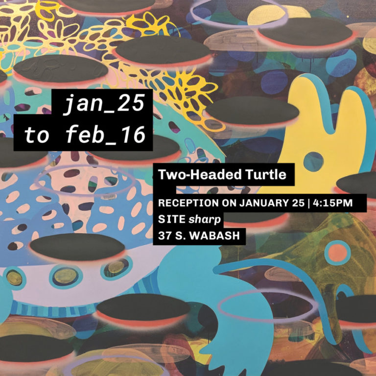 Two-Headed Turtle, Cecilia Beaven’s (MFA 2019) first solo show in Chicago, curated by Giannella Ysasi (MA 2019), presents the ludic development of Beaven’s personal mythology through painting, animation and film. Beaven creates an extended painting by transforming the two dimensional and pictorial into the cinematic and the scenographic. In Two-Headed Turtle, Beaven’s ethnographic and mythological searches are assembled into a monstrous, fragile and introspective setting.