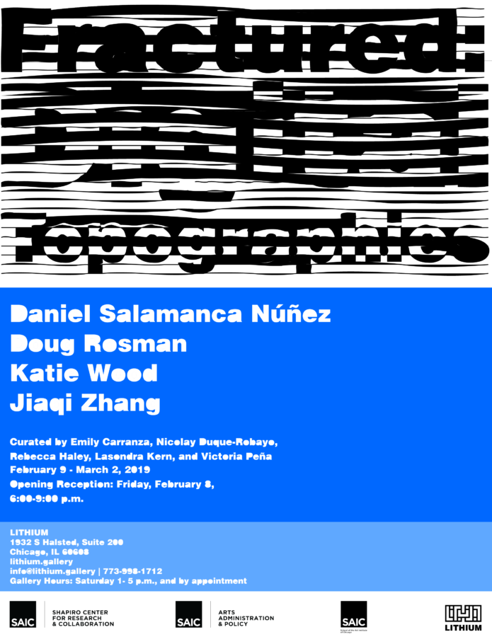 Tags: Chicago, Daniel Salamanca Núñez, Doug Rosman, Emily Carranza, Fractured: Digital Topographies, Jiaqi Zhang, Katie Wood, Lasondra Kern, Lithium, Lower West Side, Nicolay Duque-Robayo, Rebecca Haley, Victoria Peña