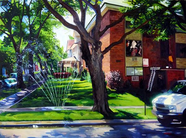 “Inspired by the urban landscape of Chicago, I paint vacant lots, El tracks, neighborhood houses, fast food restaurants, and construction sites. These ordinary scenes share a strong sense of locality but also belong to a larger American landscape and culture. Painting is an active practice for me, an exploration of beauty and resonance in daily life.”