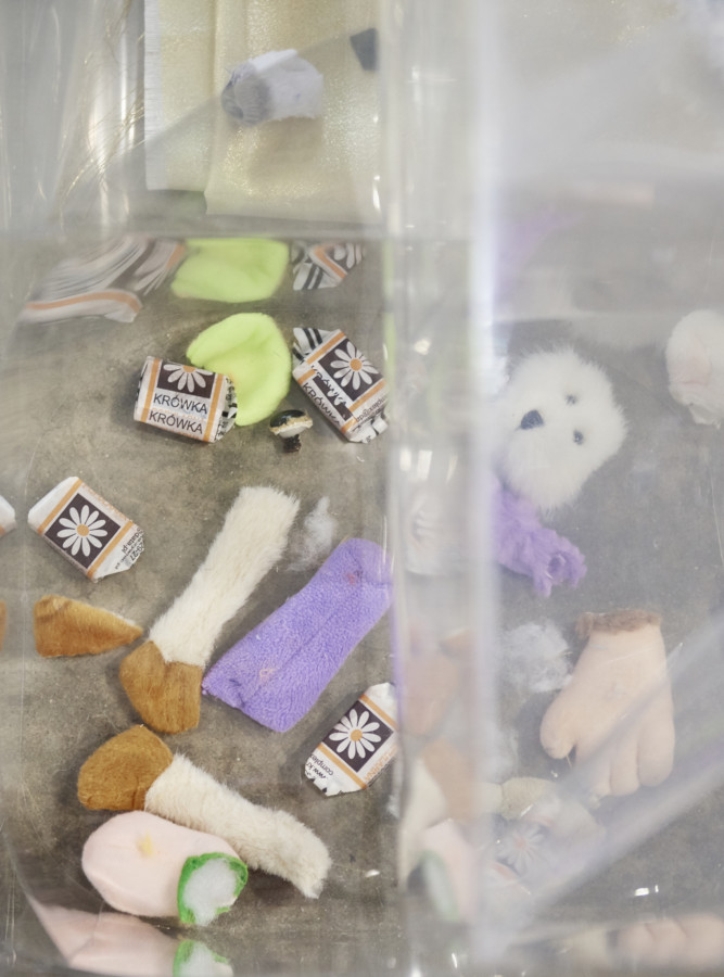 Manipulating found objects much in the way an author gathers fragments of stories, the Canadian artist brings them together into a newly commissioned body of work that she describes as “a collection of tiny intense narratives.” Here, she uses Mylar to create clear plastic support forms recalling commercial packaging for a number of sculptural “agents”—stuffed toys that she alters in various ways. In another installation, thirty pairs of secondhand shoes line a low structure, each displayed within its own box amidst elaborate embellishments. Magor uses sculptural techniques like casting, containing, cutting, and reattaching to create these hybrids, which she arranges into sprawling vignettes.