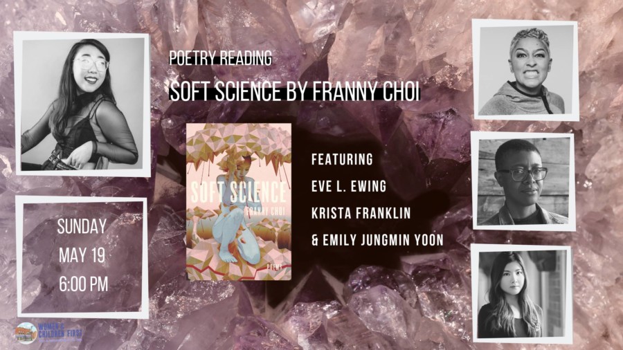 We’re thrilled to host a poetry reading and book signing with Franny Choi, celebrating the publication of her new book Soft Science. Joining her will be Eve L. Ewing, Krista Franklin, and Emily Jungmin Yoon.