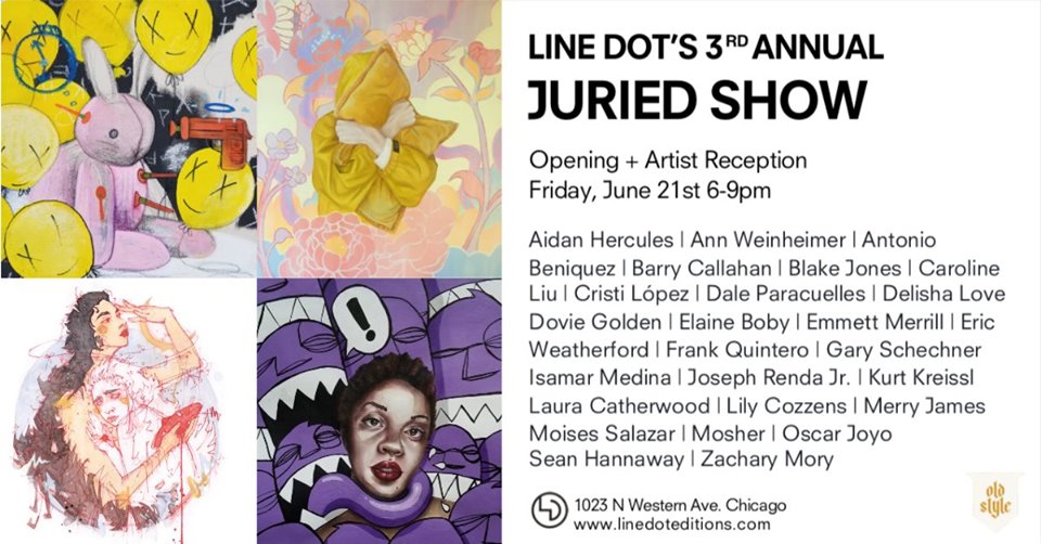 Tags: Aidan Hercules, Ann Weinheimer, Antonio Beniquez, Barry Callahan, Blake Jones, Caroline Liu, Chicago, Cristi López, Dale Paracuelles, Delisha Love, Dovie Golden, Elaine Boby, Emmett Merrill, Eric Weatherford, Frank Quintero, Gary Schechner, Isamar Medina, Joseph Renda Jr., Kurt Kreissl, Laura Catherwood, Lily Cozzens, Line Dot, Line Dot's Third Annual Juried Show, Merry James, Moises Salazar, Mosher, Oscar Joyo, Sean Hannaway, West Town, Zachary Mory
