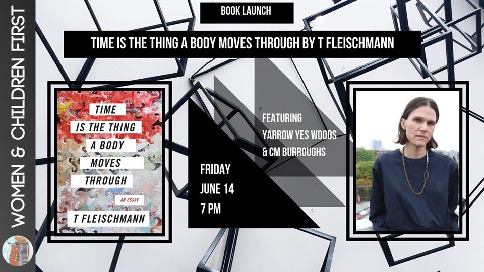 Please join us for the book launch of Time Is the Thing a Body Moves Through by T Fleischmann. Joining Fleischmann at this reading and book signing will be CM Burroughs and yarrow yes woods.