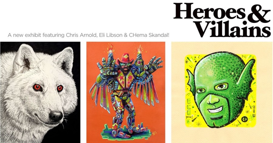 For our July exhibit we’ve invited three artists, each with their own distinct style, to interpret two of the most basic archetypes: the hero and the villain.