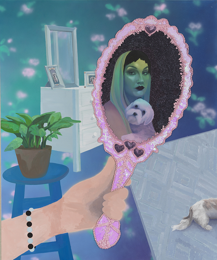 While the work presented in Serious Vanity seduces with their spangled surfaces, closer contemplation reveals complexities that are as rich as the ornamentation.