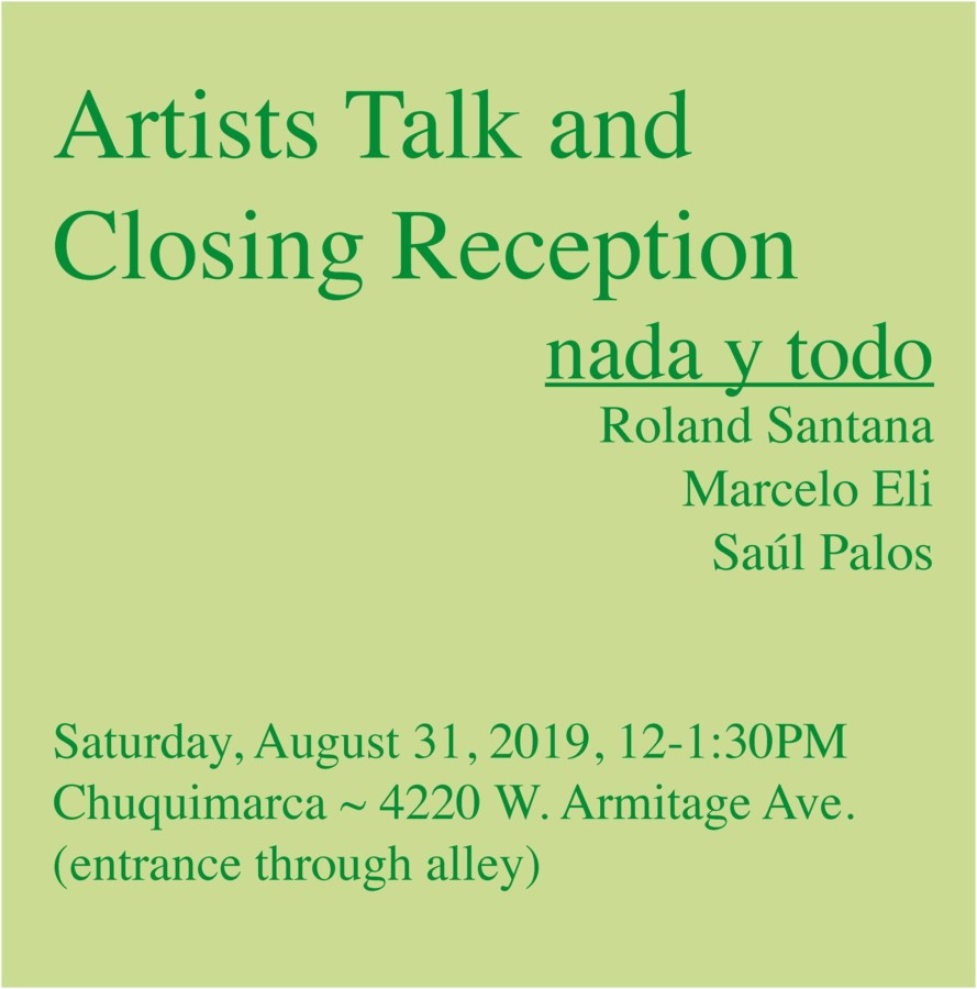 Tags: Chicago, Hermosa, marcelo eli, Nada y todo, Nada y todo: Artists Talk and Closing Reception, Roland Santana, Saúl Palos
