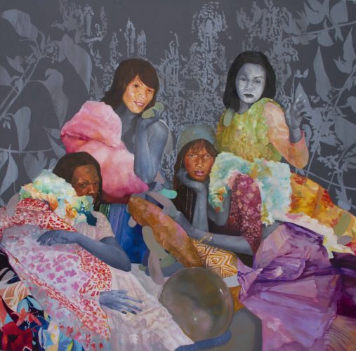 To further enrich these portraits with depths of meaning, Cruz employs a unique and coded visual vocabulary. Baroque background patterns reveal real plant types, whose native regions relate to locales where these victims lived or were found. Certain colors hold certain meanings (green relates to immigration, for example), a formal code that evokes the charged relationship between skin tone and identity. Organic, anthropomorphic forms peer out from behind figures, witnesses that break the fourth wall, inviting us in to these newly-transparent worlds. In this way, Cruz illustrates his subjects’ stories through portraiture, positioning them firmly within an art historical canon from which they have been largely excluded. In doing so, he further saves their narratives from the white noise of media coverage whose disregard bars such truths from entering our collective consciousness. Cruz humanely retrieves his subjects from this imposed invisibility.