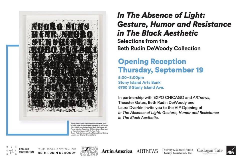 In partnership with EXPO CHICAGO, Art in America, and the Beth Rudin DeWoody Collection, Rebuild Foundation is proud to present the exhibition In The Absence of Light: Gesture, Humor and Resistance in The Black Aesthetic at Stony Island Arts Bank.
