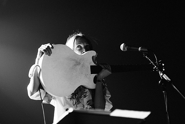 Please join us on Saturday, October 12th from 5-7pm for a closing reception and special performance by Melina Ausikaitis to celebrate her solo show currently featured at Devening Projects. ‘Free Fake Guitar Demo’ showcases this important Chicago artist, musician and performer in the intimate setting of her exhibition.