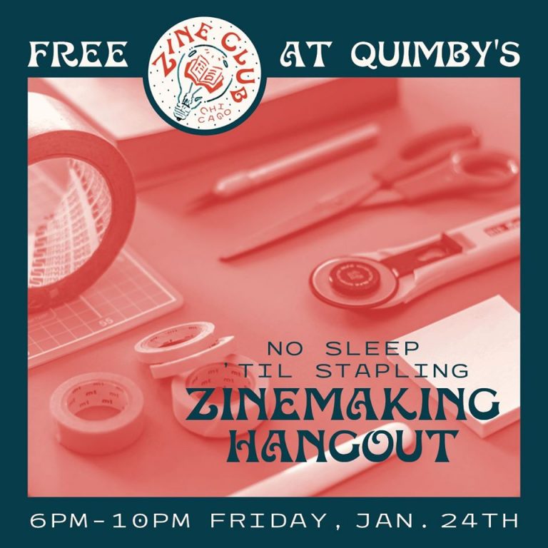 Zine newbies and longtime enthusiasts alike are always welcome at Zine Club Chicago, the city’s only book club-style event for people who read zines. This free monthly series is produced by Chicago Zine Fest/ Midwest Perzine Fest organizer Cynthia Elizabeth Hanifin and hosted by Quimby’s Bookstore.