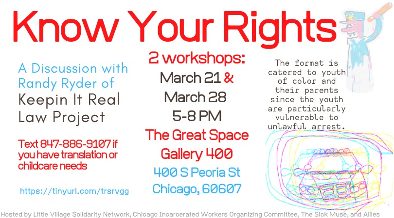 Tags: Chicago, COVID-19, Gallery 400, IWOC Chicago, KYR: Defense against Police Entrapment, Little Village Solidarity Network, near west side