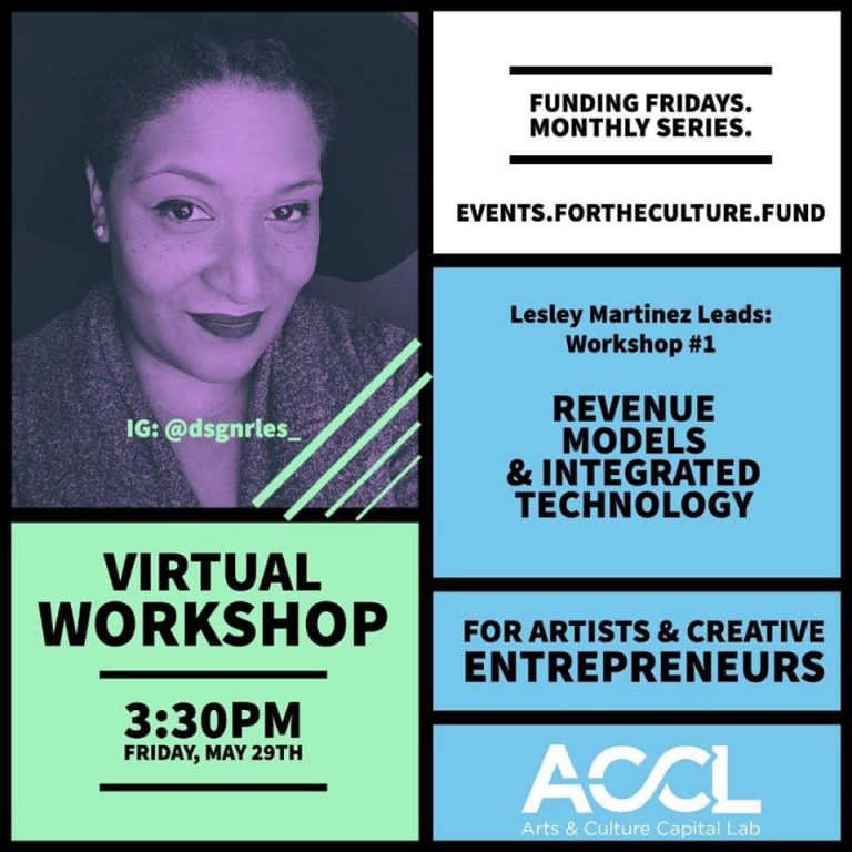 SECC is excited to soft-launch our Arts & Culture Capital Lab (ACCL) with the first in a Monthly Virtual Workshop Series titled: Funding Fridays – Live Online Education to Help Local Creatives Level-up – scheduled for Friday, May 29th at 3:30pm and the last Friday of every month ongoing.